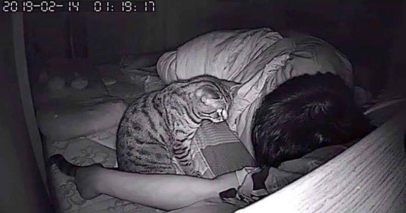 While Daniel was finishing his coffee and breakfast, he turned around and saw Muffins in the corner of the room. He stood up, went over to him, and picked him up. He placed him on his chest and started to scratch him on the head. Muffins were looking at him in the eyes as he started to purr.
