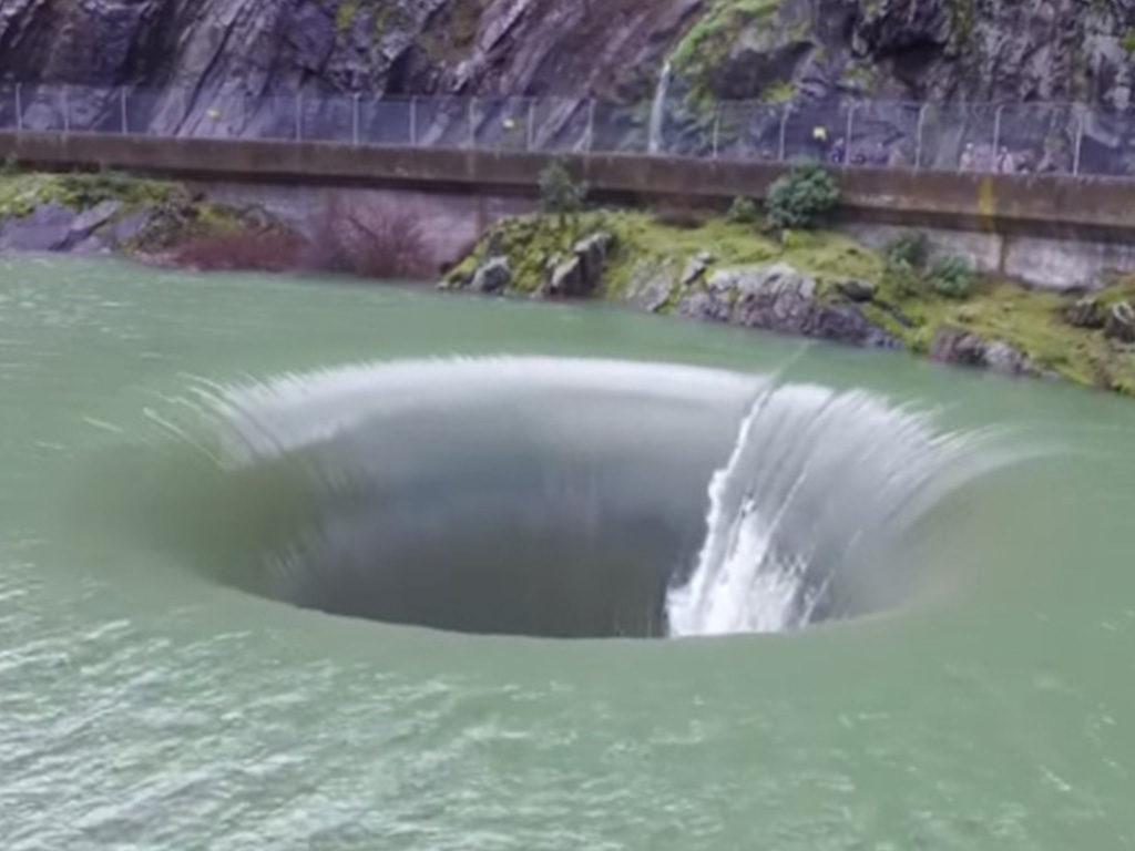 The water spilled down into the Putah Creek, which is hundreds of feet below. The creepy hole works just like the drain of a sink. If water levels get too high, the water spills into the drain to avoid overflow. But how far down does it go?