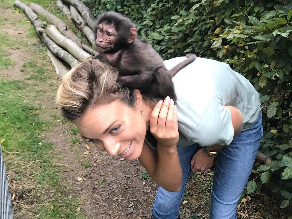 Fisher’s experience with Djalta and Ima allowed her to feel closer to other primates. On Instagram, Aspinall posted a photo of his wife hanging with a baby baboon named Gelada, who enjoyed her piggy back ride and pulling on Fisher’s long blonde hair.