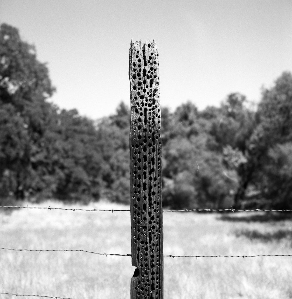 In more urban areas, however, these birds will try to create a granary tree using telegraph poles, outdoor buildings, and even homes. In this case, the woodpeckers bored holes in Von Thaden’s pool house walls. Unfortunately, once placed inside the holes the nuts fell to the ground and the birds couldn’t recover them.