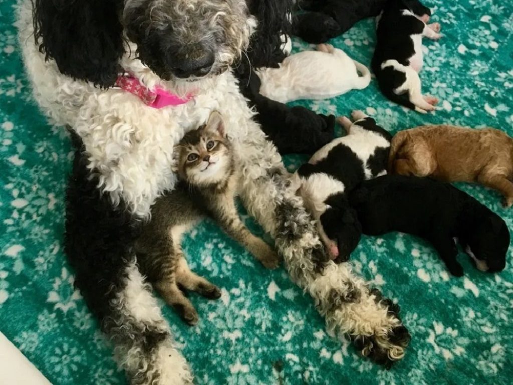 When it was time to go back to sleep, Nala would always go cuddle with her canine siblings! There’s no doubt she had a great family. Time passed and Nala grew bigger with the help of the humans, cat and dog. She was ready to get adopted…