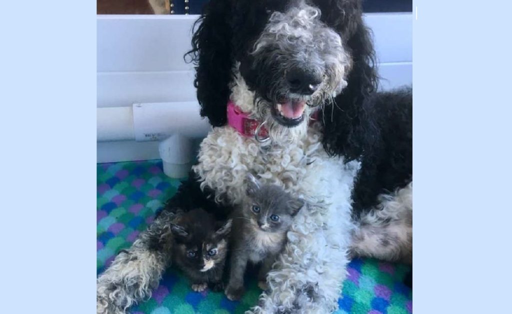 Lucky for Izzy, Myers found out that two stray bonded kitten sisters needed a home and a furry mom. So Myers knew that it was the perfect way to make Izzy happy again, and she knew that the dog would love and care for the kittens as she did with Nala…