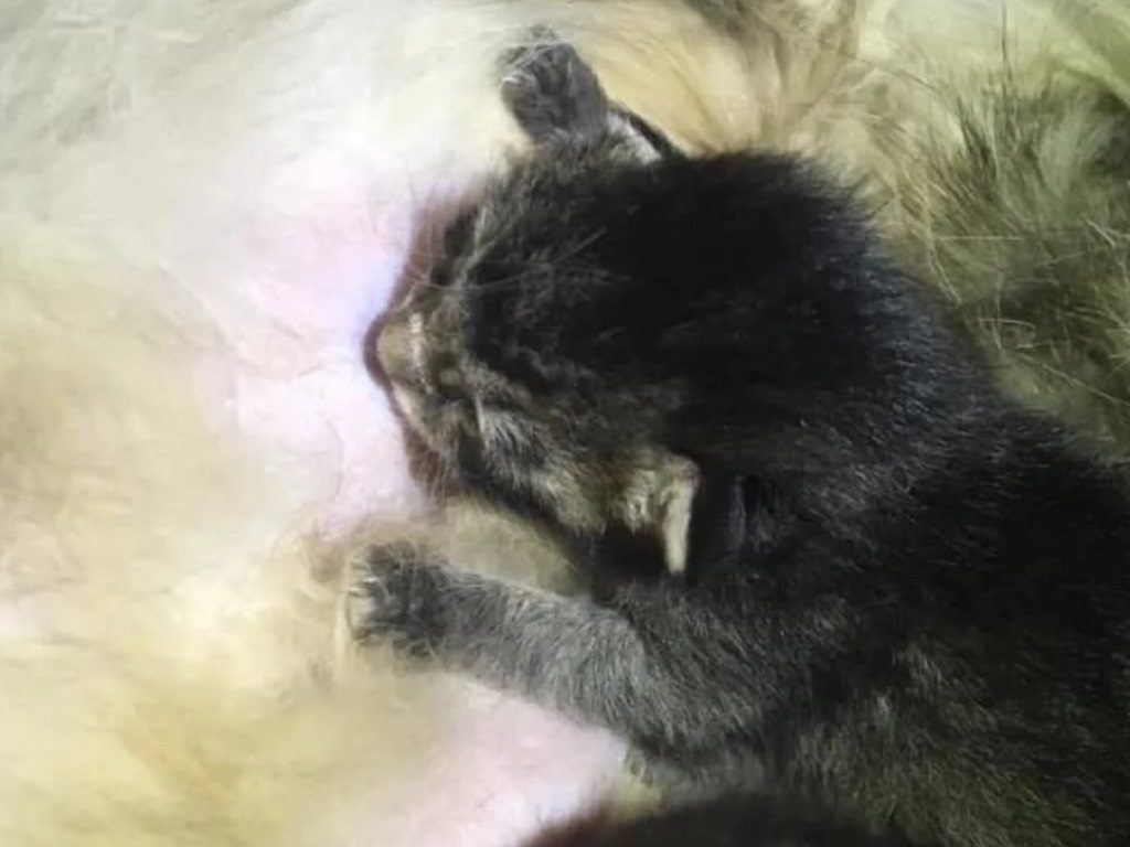 Myers said that “Izzy has two more kittens she’s loving on.” She was the happiest dog on Earth, carrying on with her job as a hardworking mom. Here’s another story from Myers when she took in a tuxedo cat who immediately bonded with a pregnant dog called Callie.