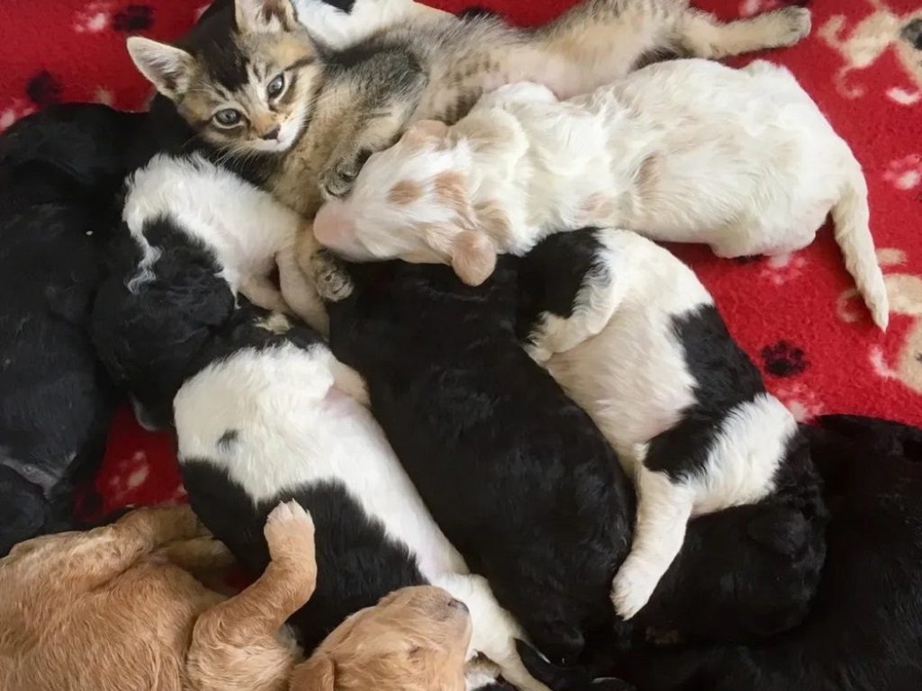 “The mama dog kept trying to get Nala and pick her up and put her in with the rest of her babies,” Myers said to The Dodo. It was so fun to watch her go after Nala and pick her up to put it back in their’ crib.’