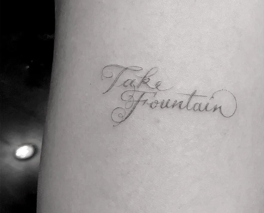 The star has quite a collection of tattoos, but this one Doctor Who added on her inner arm is a bit cryptic. You see, it’s an old quote by Bette Davis. When Bette was asked at a Tonight Show episode how can a young actress get into Hollywood, she said “Take Fountain,” which was the shortcut that led into the LA neighborhood.