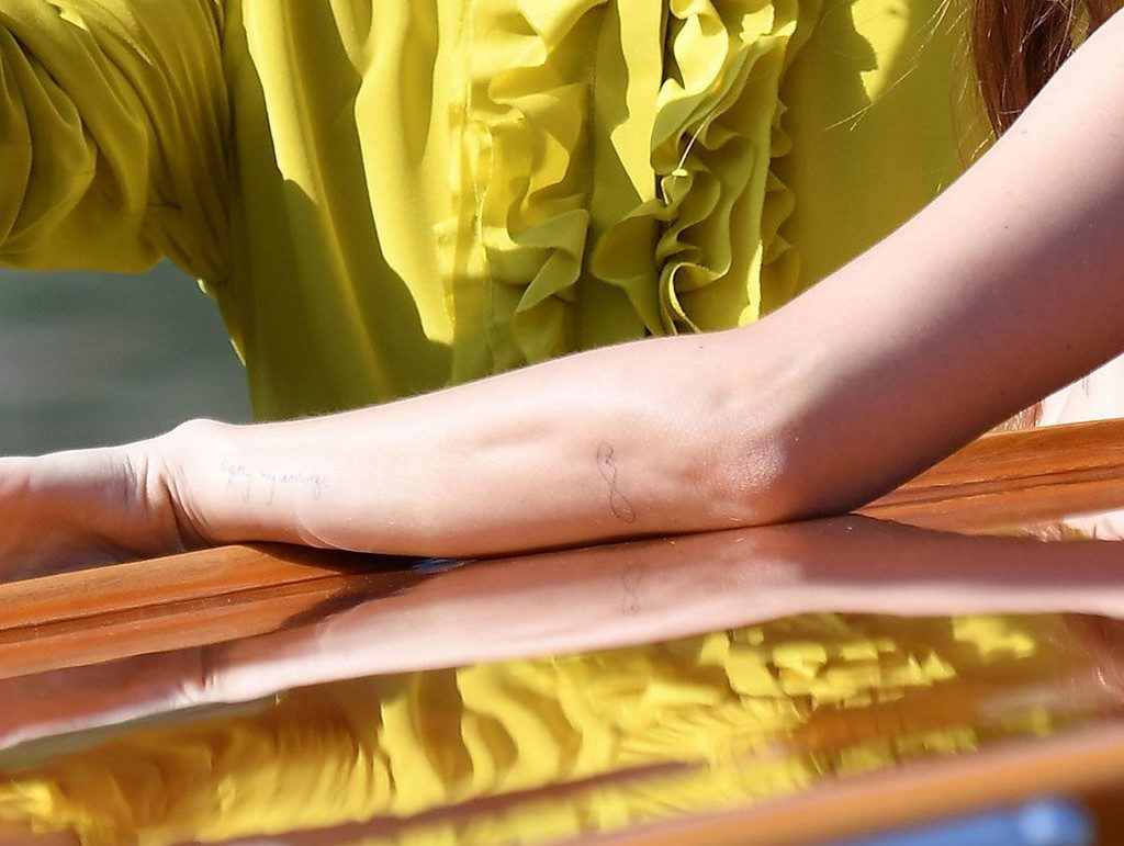 When Dakota Johnson was promoting the Suspiria remake, she revealed a small tattoo of an infinity symbol with two x’s, and Chris Martin has the same tattoo. We know that the symbol means infinity and probably together with the x’s, it could mean eternal love.