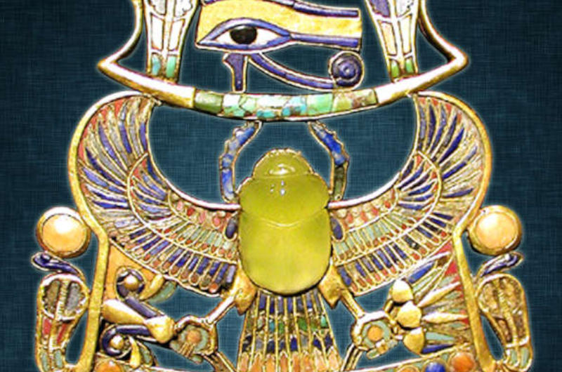 This artifact is also called the Great Sand Sea glass. It is a very rare mineral that looks like a yellow stone. The mineral has only been found in Egypt and a large piece was sculpted into a beautiful scarab. and placed in King Tut’s necklace which now resides in his tomb.