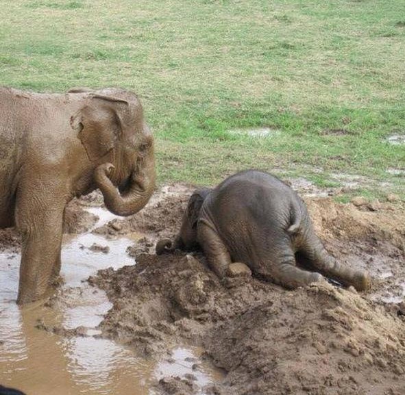 Life can be difficult for elephants, too, especially the little ones. Just like humans, sometimes baby animals get upset or tired. To release the stress, they throw a temper tantrum. When sad, baby elephants fall into the mud to demonstrate how overwhelmed they are. It’s absolutely adorable and funny at the same time. The baby elephant in this photo threw himself onto the mud because life is too much sometimes.