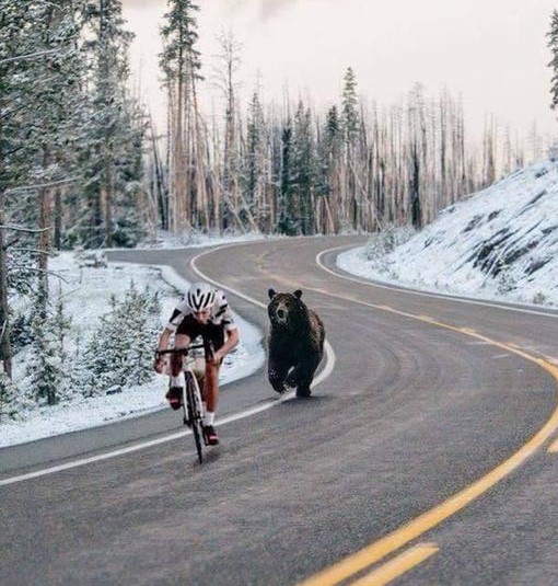 We all fear of being killed by wild animals like bears. While bears rarely attack humans, it still happens from time to time. This photo of a bear chasing a guy on the bike was taken in Alaska. Every time we step into the woods, there’s a small chance of a wild animal attacking us. That’s why we should always be on the alert for animals while exploring the wildness. Hopefully, nothing bad happened to this guy!