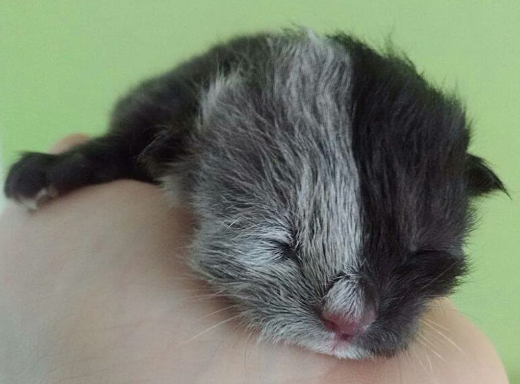 She named her kitten Narnia because he was truly magical! While cats usually come in a variety of colors, this baby cat was far more special. You see, his fur made him look like he had two faces!