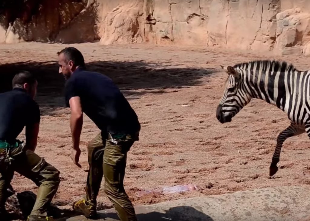 The baby zebra was now safe on the shore, so the man had to rush back into the water to make sure they’re safe and far from the distressed mother. She came close to her newborn to check if he was all right. And that’s not all!