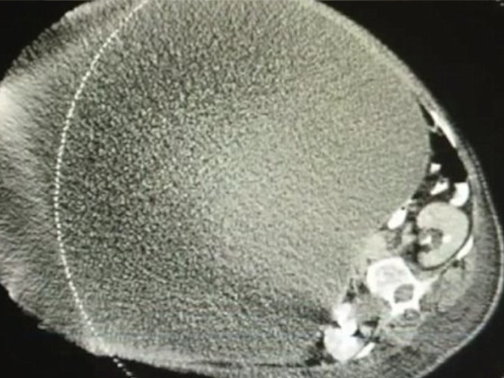 The CT scan showed that the growth inside her stomach was an ovarian cyst that was 24 centimeters thick and filled with fluid. In this case, it might have been blocking the blood flow to the ovaries and if it burst, it would put her life in danger.
