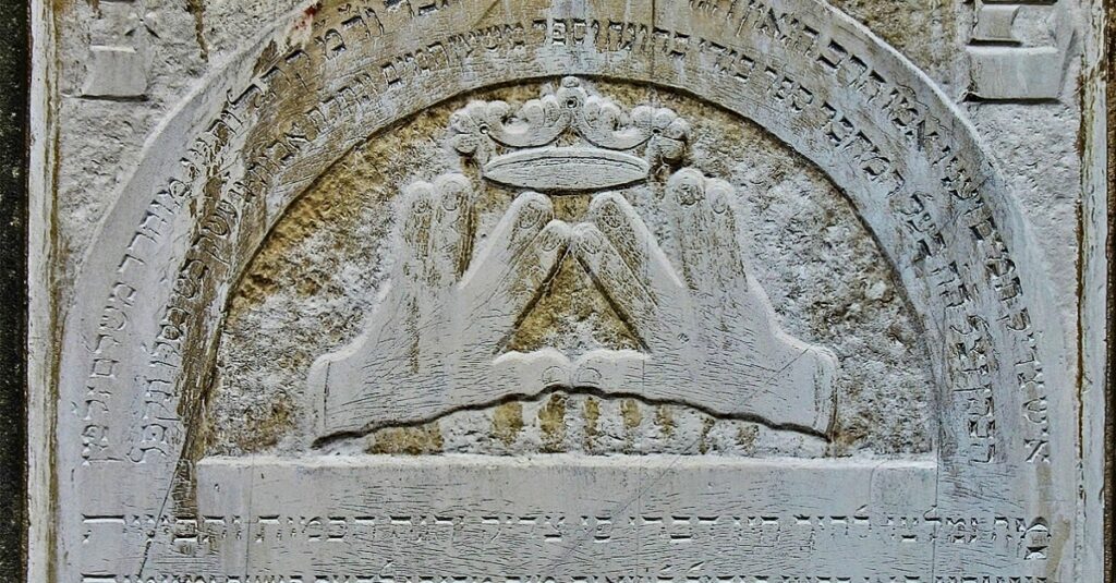 Hands or a finger pointing up through a crown indicate that the deceased has gone to heaven through the power of Christ’s resurrection.