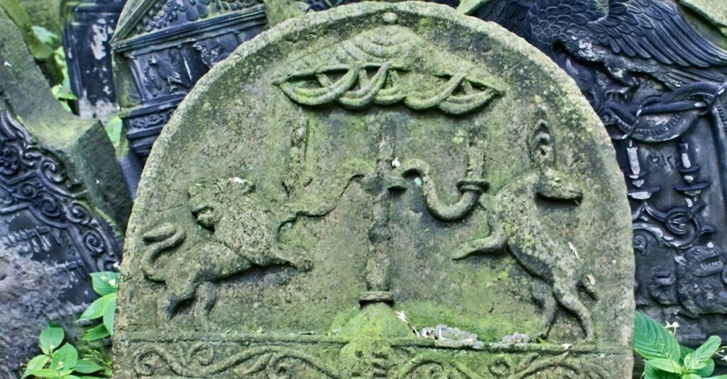 A lion carving or statue in the cemetery serves as a guardian, protecting the tomb from evil spirits and unwanted visitors.