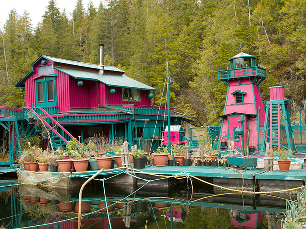 A manmade island created by Wayne Adams and Catherine King, Freedom Cove is located in a secluded area off of Vancouver Island, Canada. There is no road access to the island, so the only way for anyone to come or go is by boat. The entirely floating island has a main house, four greenhouses, a lighthouse and a dance floor!
