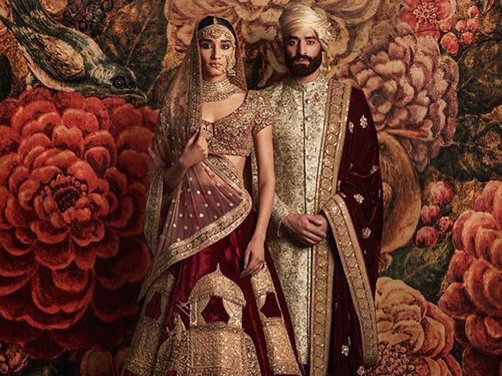 In traditional Indian weddings, brides tend to go for a pink or red gown as this color represents prosperity and fertility. This bride’s wedding dress has gold print mixed into her dress but the overall color palette is still predominantly red.