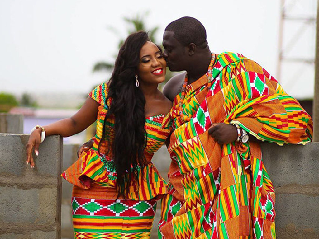 If you want a dress with lots of colors then you’ll love Ghana’s traditional wedding dresses. Their striking geometrical patterns makes any bride stand out thanks to their many shades of green, orange, reds and purples. Plus, the groom and the bridal families also get to wear a colorful patterned outfit to the big event.