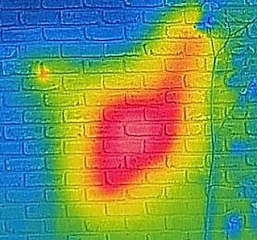 Una telecamera di infrarossi ti permette di vedere il calore emanato da un certo punto. David restò a bocca aperta. Qualunque cosa si trovasse all’interno del muro, era enorme.