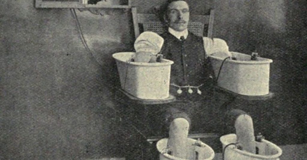 If perhaps you didn’t feel like being electrocuted, you could always try hydrotherapy! Hydrotherapy was pretty much exactly as it sounds, you soaked your arms and legs in the water. This was used to treat baldness in men and ‘hysteria’ in women.