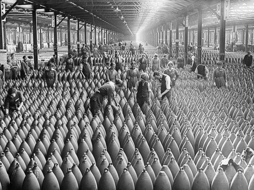 The National Filling Factory in Chilwell, England in 1917. Workers were responsible for filling missiles and other ammunition with explosives – and had to try very hard not to knock anything over and cause a major catastrophe.