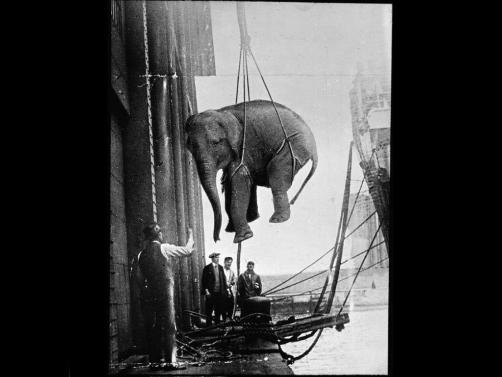 Working at a dock could involve a lot of unusual safety hazards. Sometimes, as in this photo, you’d be responsible for hoisting an elephant on or off a ship. While the details of this photo are lost to history, the Tyne & Wear Archives & Museums believes that the elephant was part of a travelling fairground.