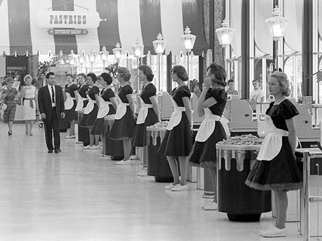 This photo was taken at a Piggly Wiggly Continental in Encino, California in the ‘60s. The store was meant to be a gourmet-oriented location and they stocked international cheeses and tons of wine. The location also had a fully stocked gift and cosmetics counter, but the store sadly closed in the ‘80s.