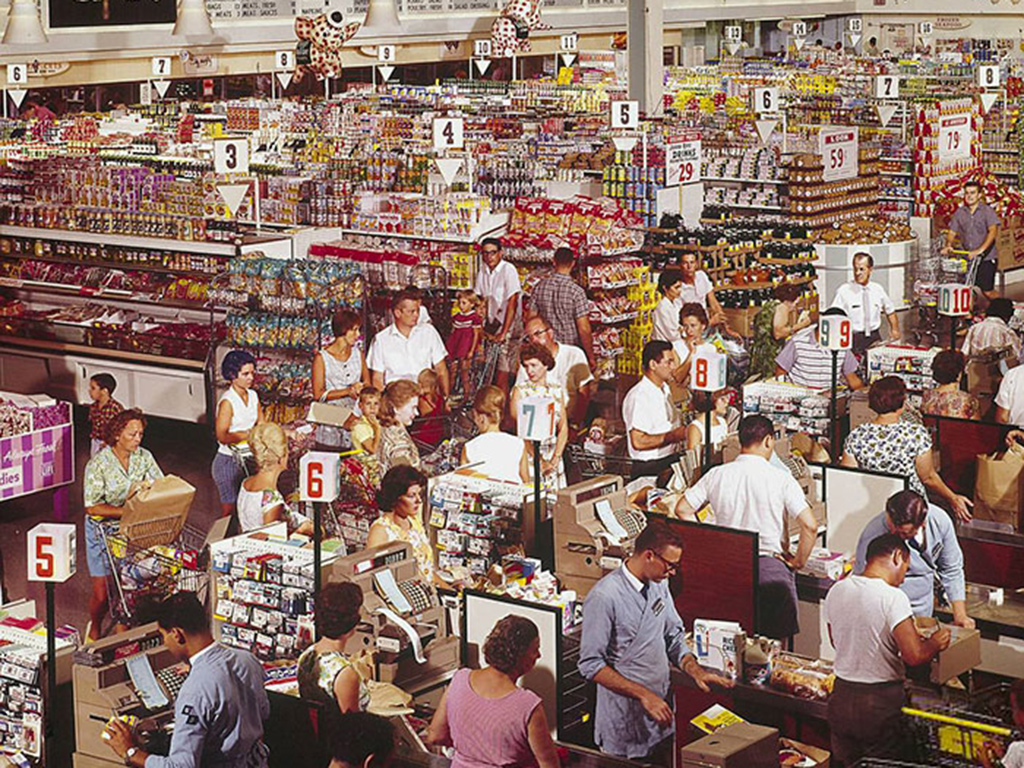 The vintage ‘60s fashion in this photo is a great testament to the fact that people used to dress up to do their errands on a regular basis. Stores like this, which stocked tons of products in every aisle, weren’t exactly normal in the ‘60s. It wasn’t until 1962 that the first Walmart location opened and it wasn’t until many years later that they opened more locations across the country.