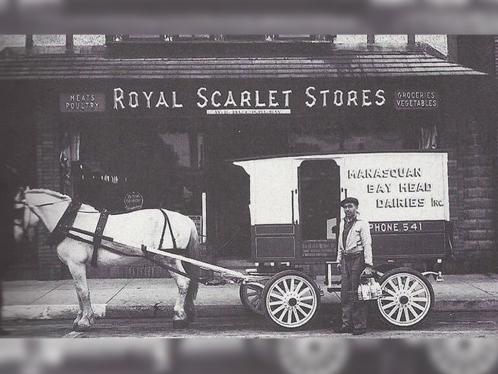 It’s not something that many people see often anymore, but during the turn of the century, it wasn’t uncommon for people to arrive at the grocery store in a horse and buggy. Groceries were also delivered to the store by vehicles such as this dairy truck.