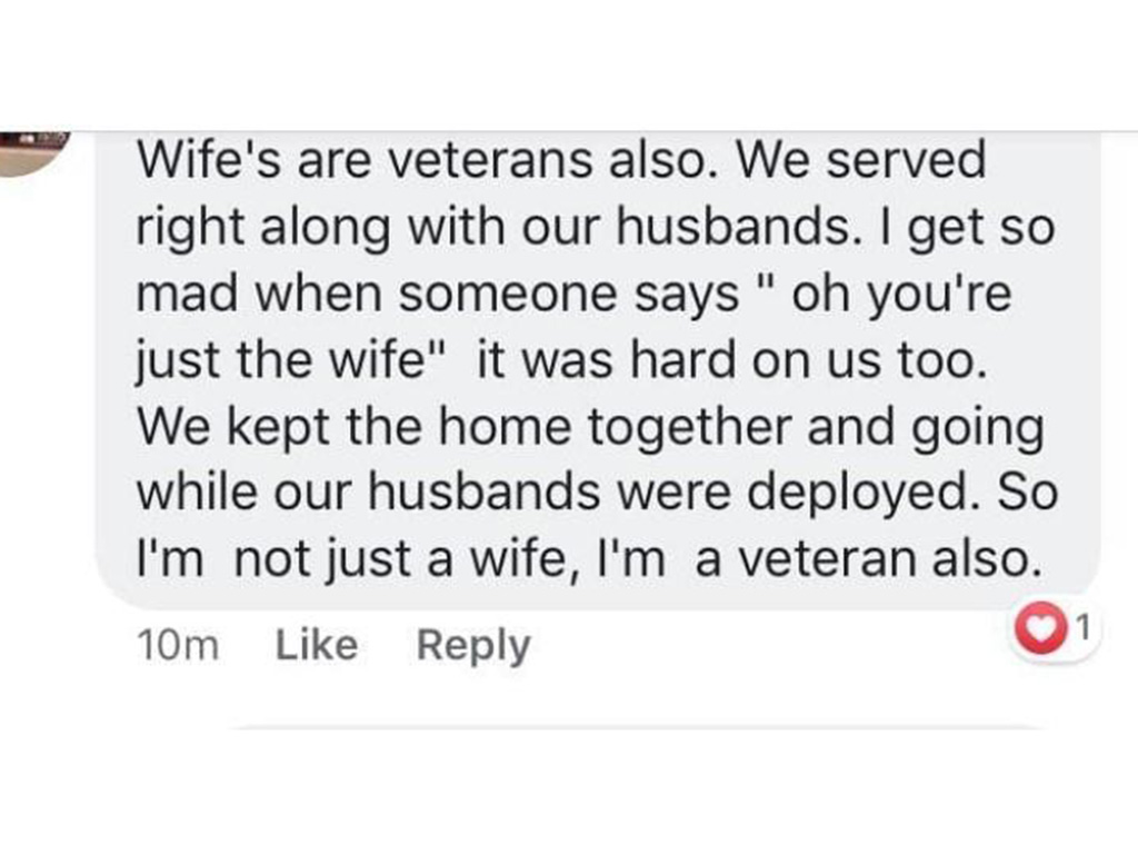 ‘It’s laughable how some of the military spouses view their spouses’ accomplishments as their own and try to pull rank over other people,’ another comment reads.