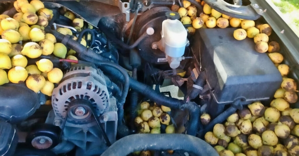 It was walnuts. There were so many walnuts that the trunk was just about overflowing with them.