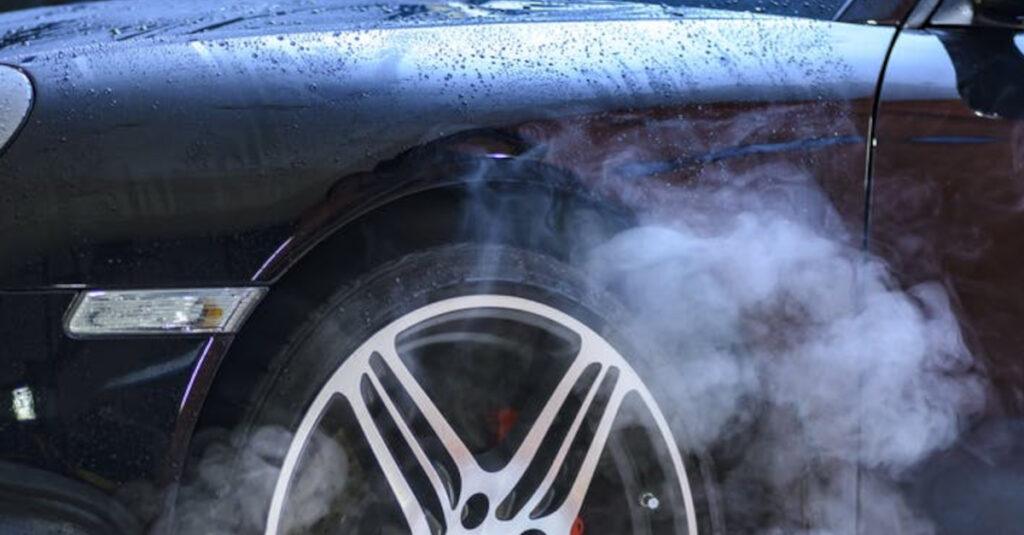 By the time he pulled into the lot, he was coughing his lungs out – and the mechanics racing out to help him (probably thinking the car was on fire).