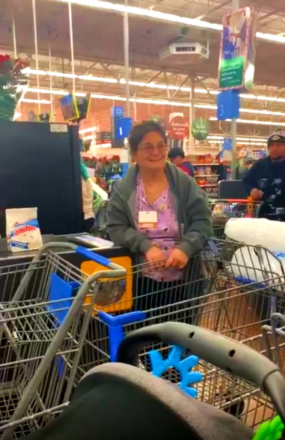 She watched “Cee Cee” pay for a few other people’s entire grocery bill with a swipe of her card. The people in Walmart were amazed at this stranger’s generosity. They laughed and expressed their gratitude, posing for pictures with the woman and hugging her. One even bought her flowers! But then, suddenly, the jig was up.