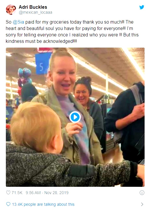 Adri Buckles immediately posted her apology for letting the singer’s identity slip on Twitter. “So @Sia paid for my groceries today thank you so much! The heart and beautiful soul you have for paying for everyone! I’m sorry for telling everyone once I realized who you were! But this kindness must be acknowledged!” Soon after, the post had accumulated over 71 thousand views. But not everyone had something nice to say.