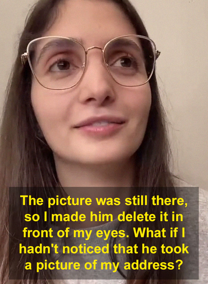 We agree with Shey, because who knows what would have happened if she let the man run away with pictures of her address on his phone? In the end, his plan may have been to wait in front of her house when she went for an evening walk with her dog.