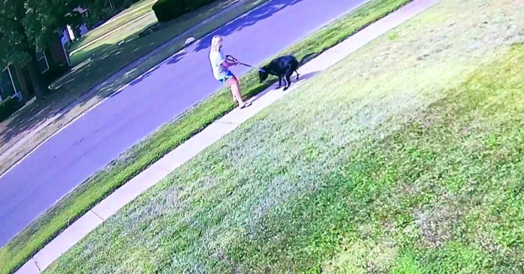 Bella and Sadie begin to bark loudly, and then make a move toward the front door. In the security footage, they can be seen cleverly opening the unlocked door by its handle, and running outside. Then, they make a beeline straight for Alexandra’s yard. To an onlooker, their behaviour is puzzling. But when Alexandra sees them, she knows they are asking for help.