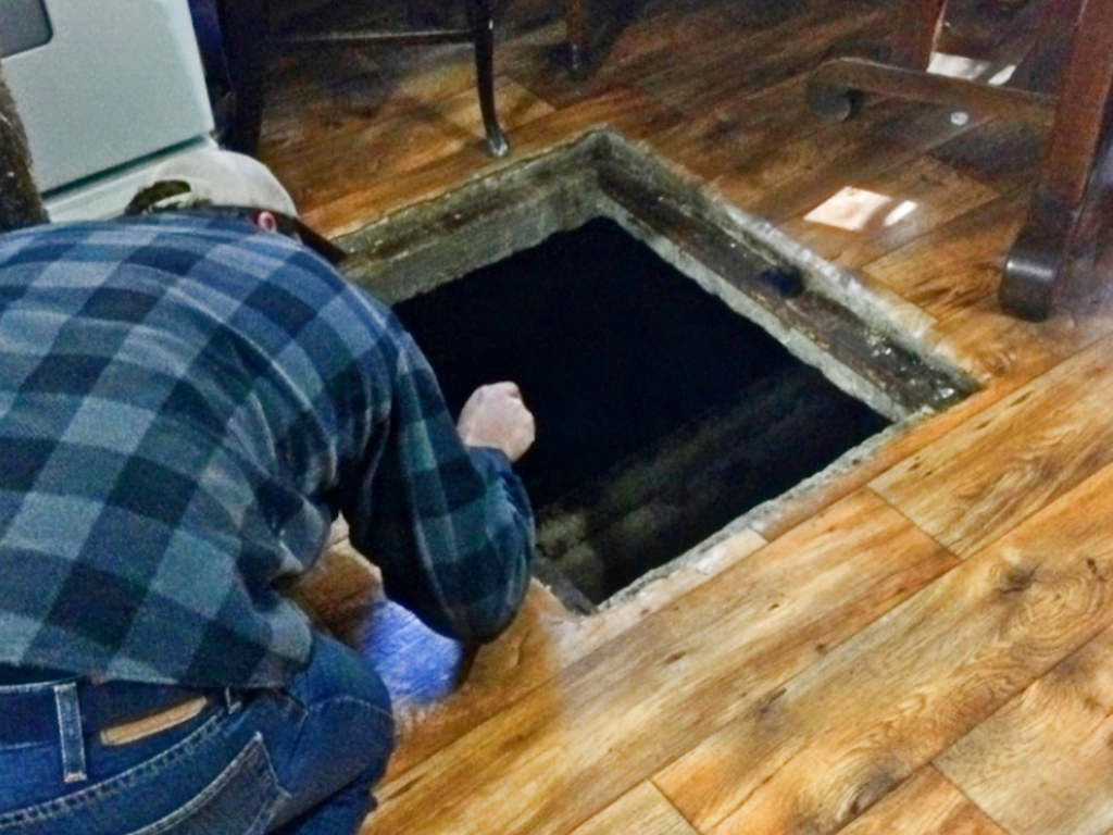 It wasn’t long until he smelled something pretty terrible coming from below. It turned out there was a crawlspace with gooey, rancid water that looked like it could be an experiment out of Resident Evil. The previous guy’s solution was just to cover it up;