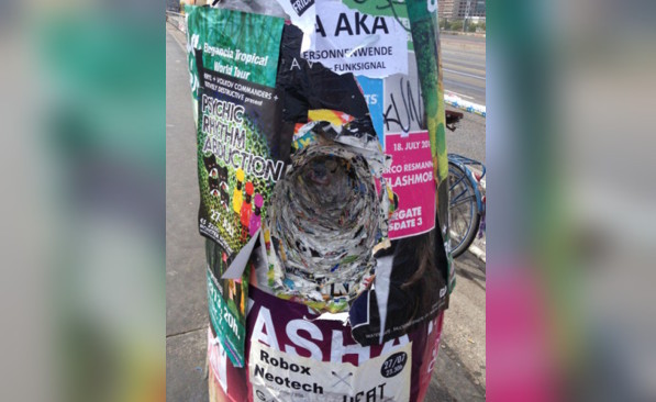 23. You can certainly find a poll in your city where lots of fliers have been placed. Do you remember what the poll looked like before people started placing flier on it? Well, this person certainly wanted to find out and started to drill a hole. He didn’t even make it to the end because of the number of flier people placed on the pole.