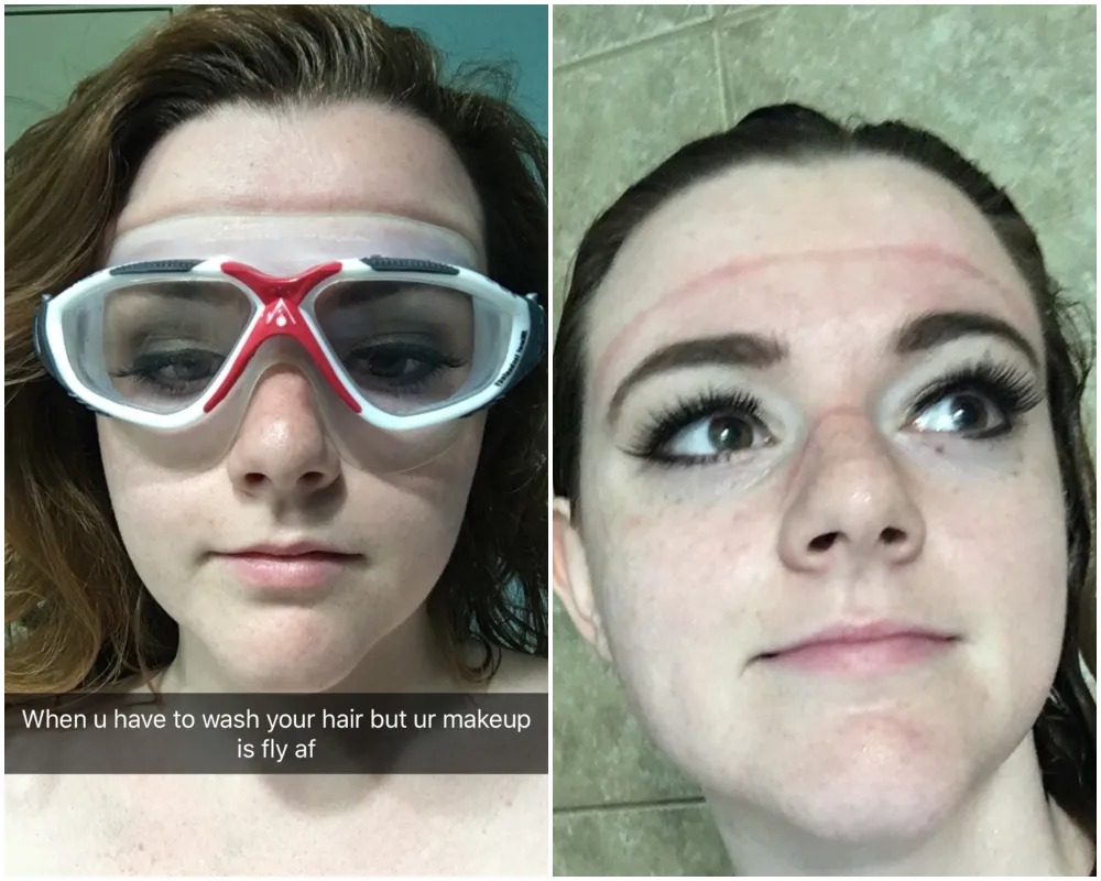 Let’s clarify one thing first, okay? There’s no doubting that this woman is brilliant, whether or not she’s making fun of herself for donning goggles in the shower. Those who use makeup will completely understand this.