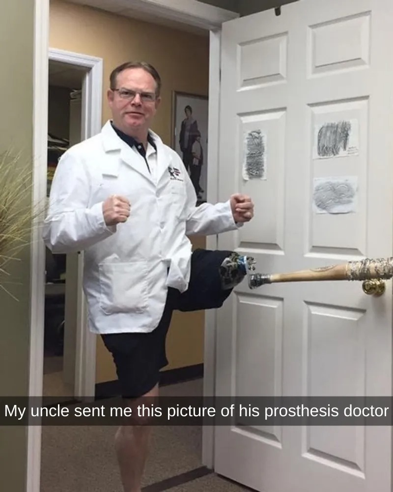 But as they say, laughter is the best medicine. And we know that this doctor would concur. After all, he’s holding a baseball bat in his prosthetic socket while posing for a photo. This image is yet another example of how self-irony can be beneficial in any circumstance.