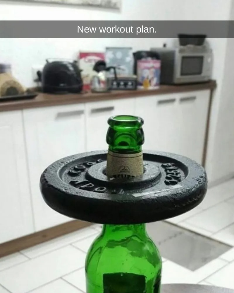 The following individual mastered self-irony! Why not learn a few things from this poster if you enjoy drinking but don’t enjoy going to the gym? They chose to create their own training plan since they enjoy unwinding with a bottle of wine after a long day at work, knowing well that they won’t make it to the gym.