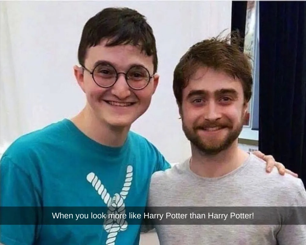 Well, this is bizarre. If we ourselves had to do a double-take, then we can only imagine how actor Daniel Radcliffe reacted when he was approached by this fan — a fan that looks more like his famous character, Harry Potter, than he himself does.