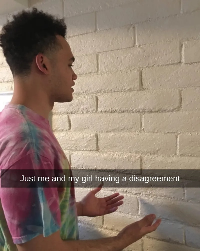 We’ve all heard the saying — “It’s like talking to a brick wall.” When people say this, what they really mean is that the someone they are speaking to doesn’t react or listen. This Snapchat user took this sentiment to the next level by posing in front of an actual brick wall and captioning the picture, “Just me and my girl having a disagreement.”