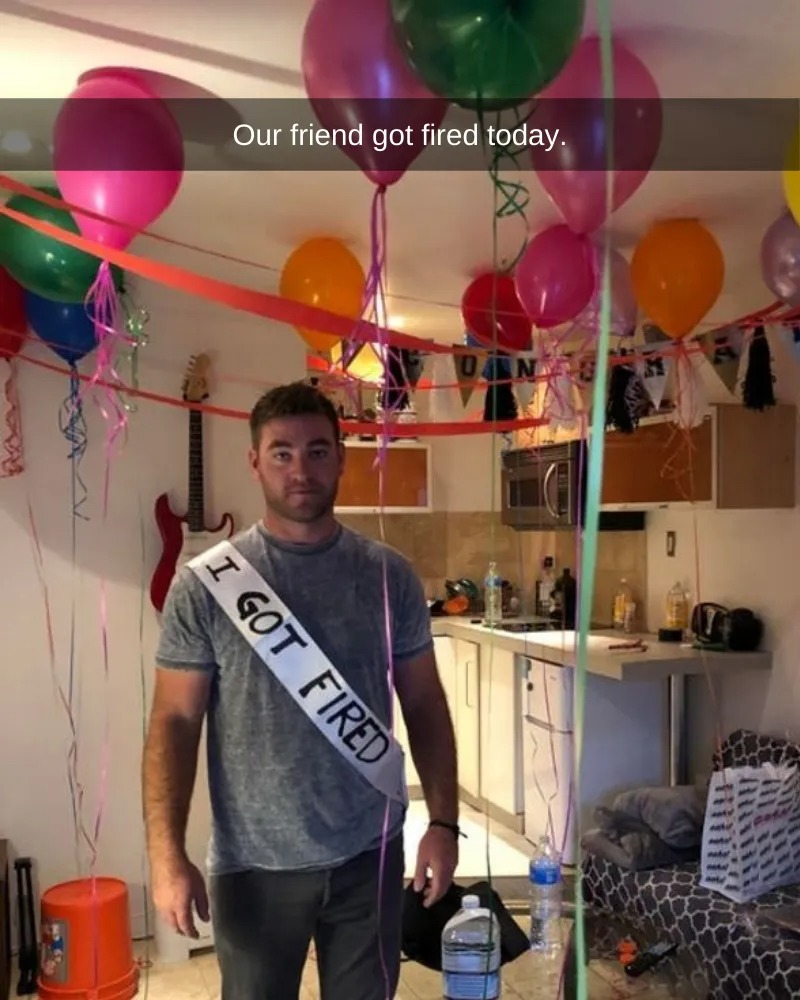 Much like the divorce party that we saw on this list, this guy’s friends celebrated him for getting fired! While getting the axe isn’t necessarily the most ideal situation, perhaps you could consider it a blessing in disguise if you weren’t totally keen on what you were doing.