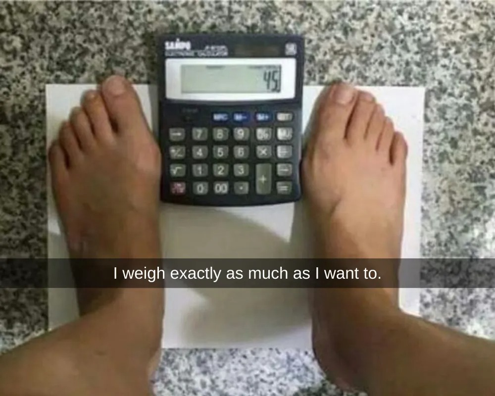 This OP seems to have taken that attitude and gone with it! This person wished fervently enough, and presto, they now weigh precisely what they desire. Guys, dreams truly do come true!