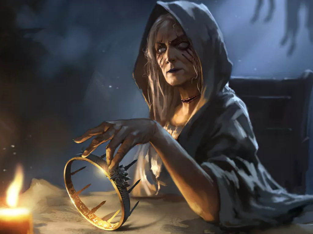 Lady Stonehart, dark, sinister woman who hides her face under a baggy cloak. Under the cloak, it’s eventually revealed, is none other than the undead corpse of Catelyn Stark. While the Red Wedding saw the end of the character on TV, the novels resurrect her as a scheming zombie who leads the Brotherhood Without Banners.