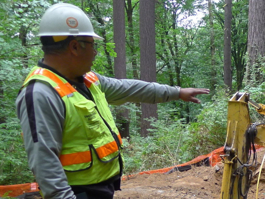 As his colleague did the heavy lifting, another worker noticed something inside the house reflecting the sunlight streaming down through the trees. But before he could get a closer look, the crane roared into action. “Wait!” screamed the worker, waving his arms. “There’s something inside the house!” But the ball was already hurtling towards it.