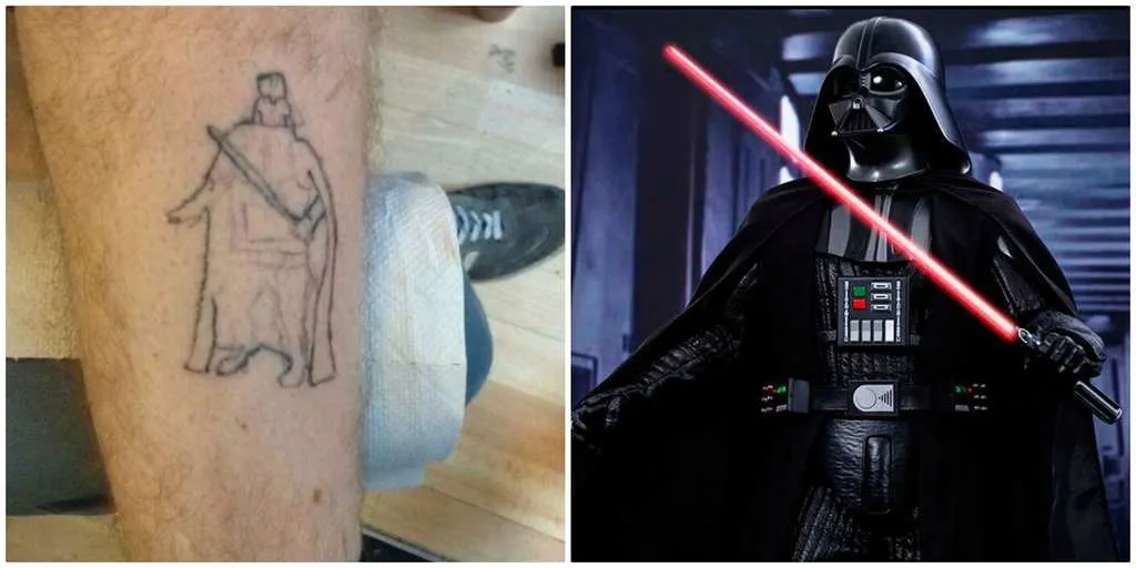 This is pretty bad for many different reasons. First of all, that lightsaber looks like a baseball bat. Basically, this tattoo just looks like a baseball player in a cape with a mullet spilling out of his helmet.