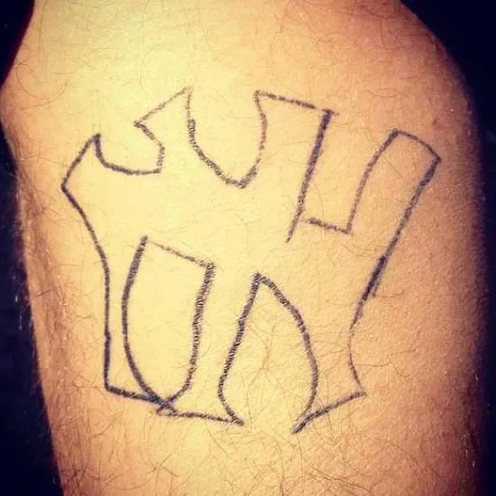 There isn’t very much difficulty in doing this tattoo. All that needs to be done is put a capital N over a capital Y, but this underqualified tattoo artist couldn’t even do that properly.