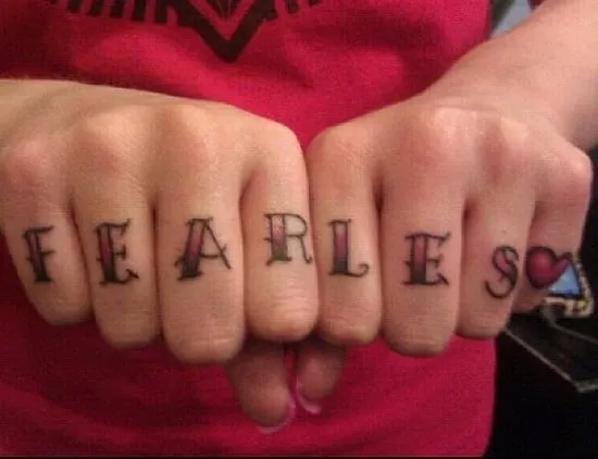 It makes much more sense for the tattoo client to have just made a gross error in writing “fearless,” which wasn’t caught by the artist. It’s almost like they thought the word had only one “s” and needed the heart to take the place of a letter on the last finger.