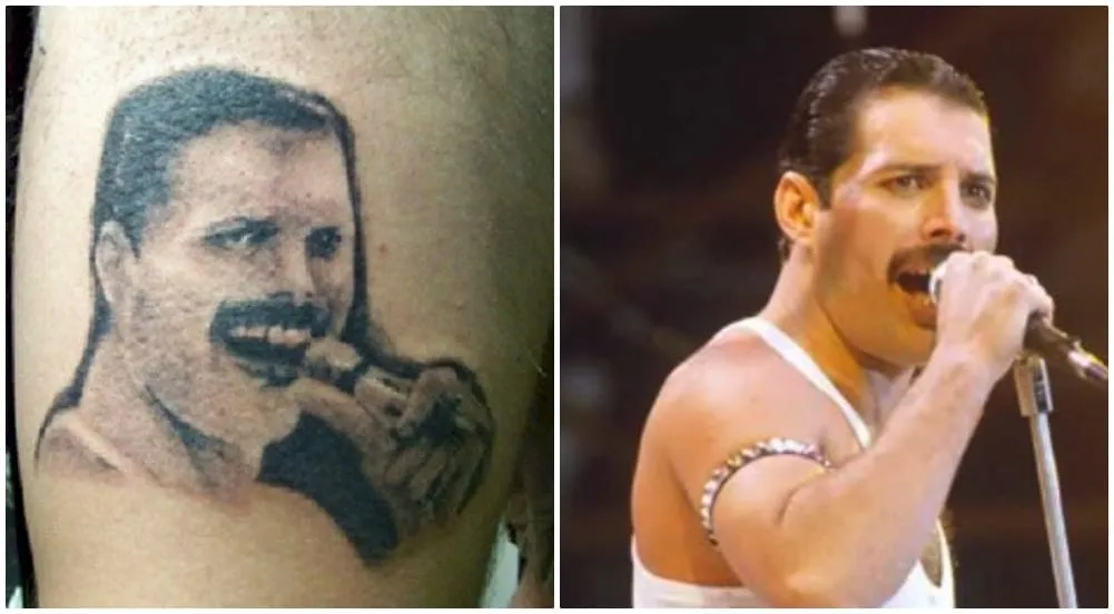Many Queen fans have gotten tattoos of Freddie Mercury on their bodies, but we doubt any of them were as horrible as this one!